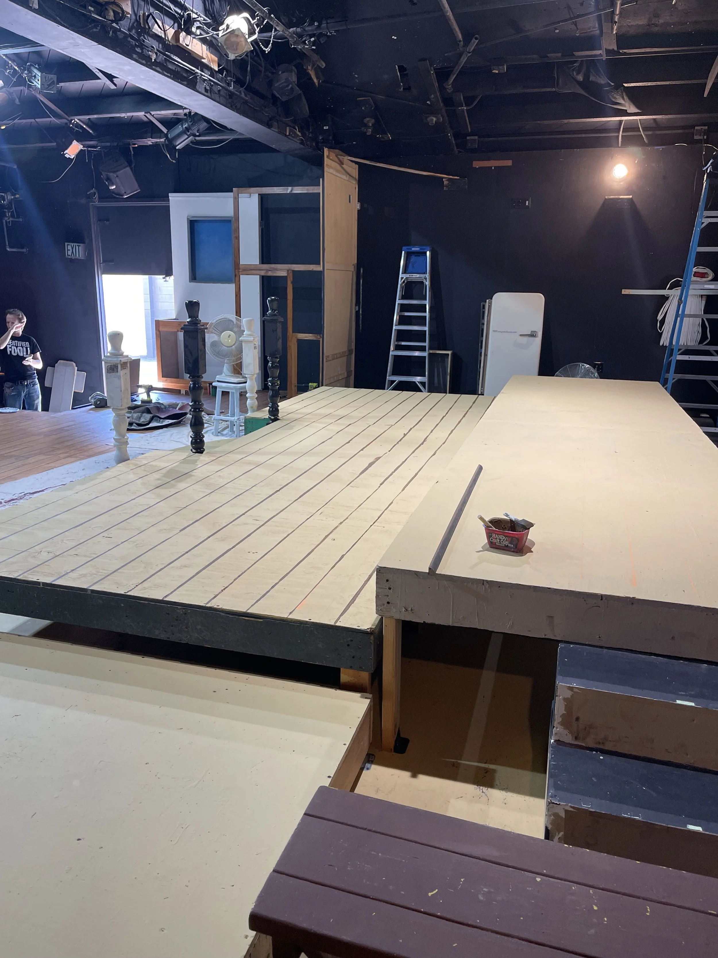 The Westchester Playhouse in Los Angeles produced a revival of Terrence McNally’s Love! Valour! Compassion! in spring of 2025. I am grateful to have been chosen as the Set Designer on this production to bring McNally’s vision to life. I stayed true to McNally’s stage and set directions with a simple stage inclusive of scenic accents that don’t take away from the dialogue of the play. The set consisted of simple platforms and chairs that were versatile for both in-house scenes as well as outdoor scenes on the lake. Additionally, downstage left and downstage right gave way to more stationery set pieces (e.g. kitchen and outdoor lawn), where heightened parts of the production take place.